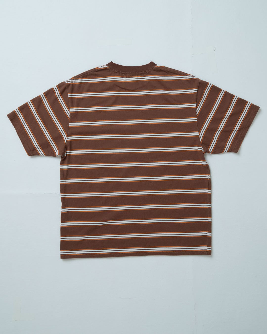 SANDEIGOのLA JOLLAのビーチをイメージて作ったボーダーTEEとタンクはLA JOLLAのビーチ特有の岸壁をイメージしたオフベース×ブラックとバーガンディーとブラウンベースにオレンジとホワイトのボーダーはLA JOLLAの街にあるリカーショップの看板とパドレスをイメージして作りました。