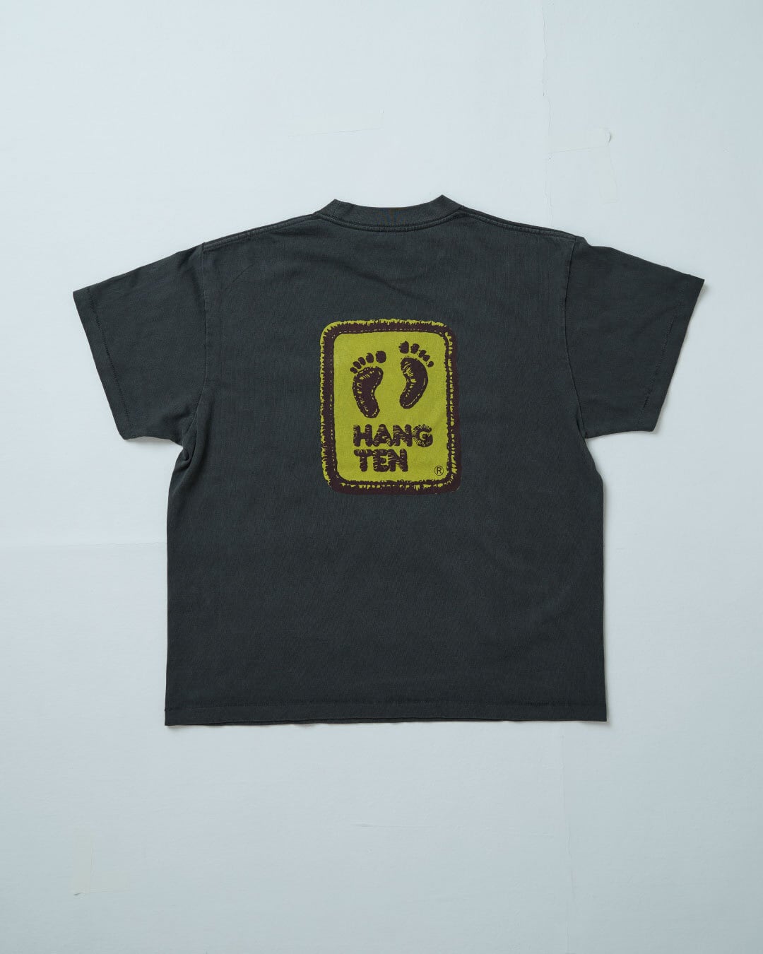 HANGTENのブランドロゴをプリントしたこちらのオリジナル丸胴TEEは18番反糸で編み立て、シングルステッチ仕上げ、製品染めからケミカルウォッシュ加工を施し当時のTEEのような面構えにしました。着込めば着込むほどに表情が変わっていく感覚を楽しいんでいただければと思います!