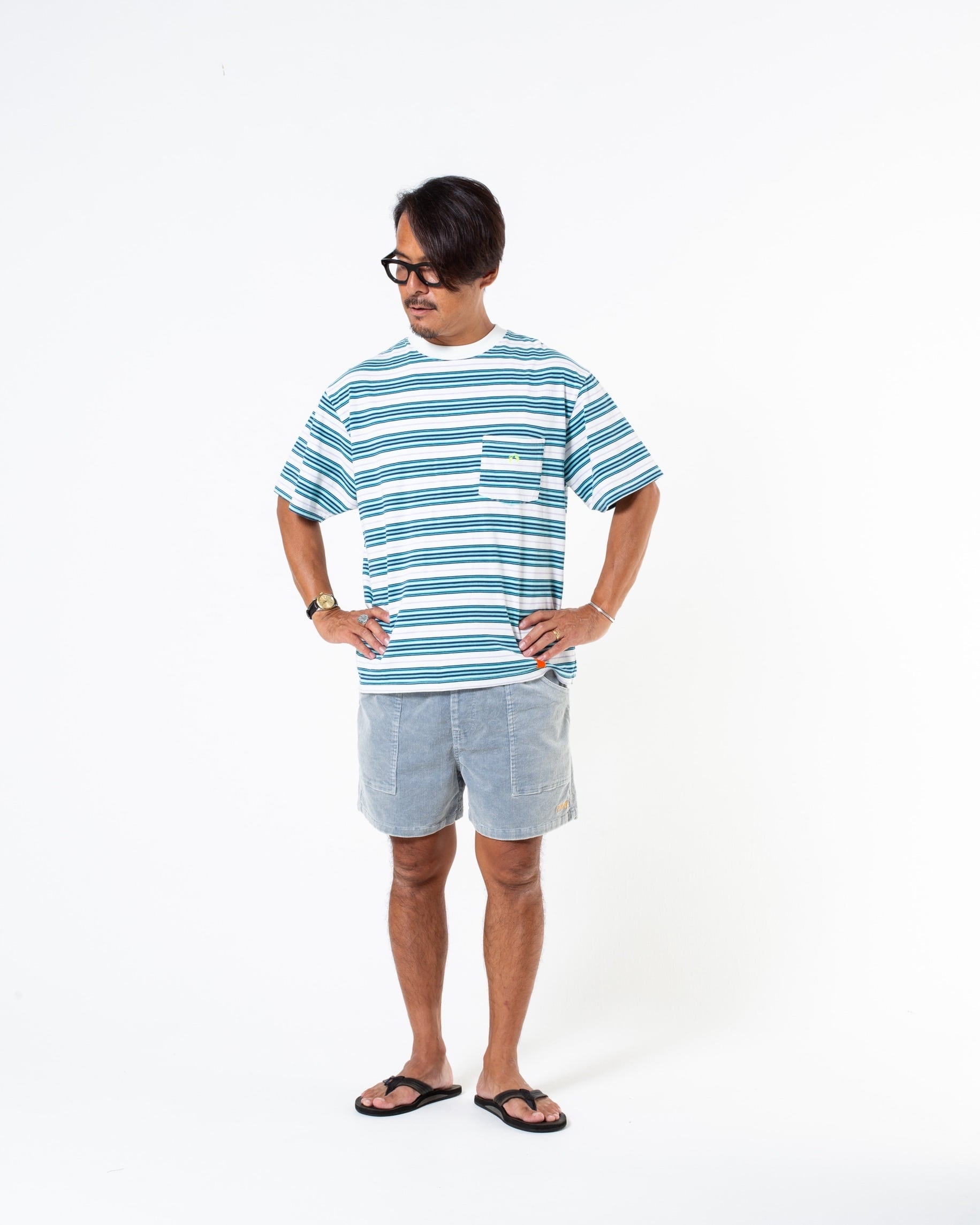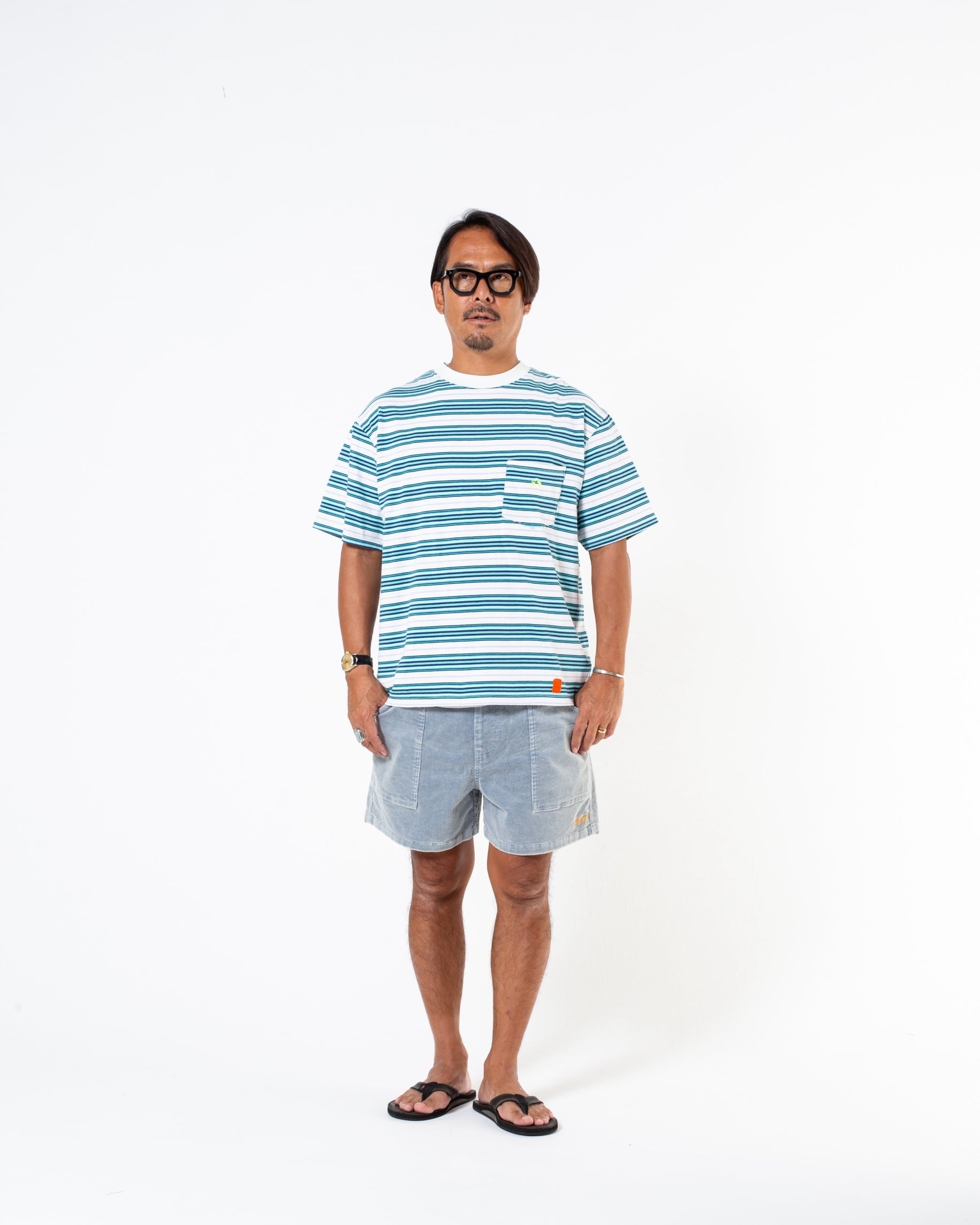 HANGTENらしい爽やかなマルチボーダーを落とし込んだ、夏の定番ポケットTシャツ。